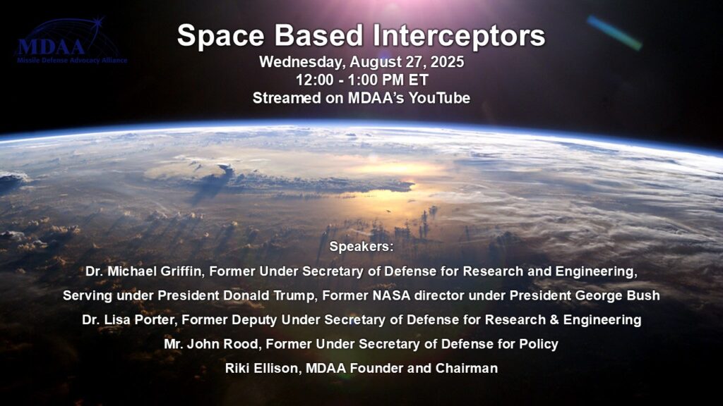 Please join us on Wednesday, August 27, 2025, at 12:00 PM (ET) for our 82nd congressional roundtable virtual, Space Based Interceptors.