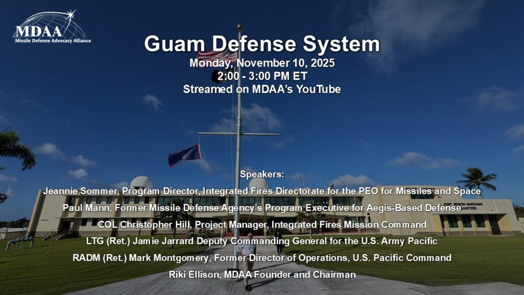 Please use this form to RSVP for MDAA’s Virtual Roundtable – Guam Defense System. You can also submit a question in this form to be asked during the live event.
